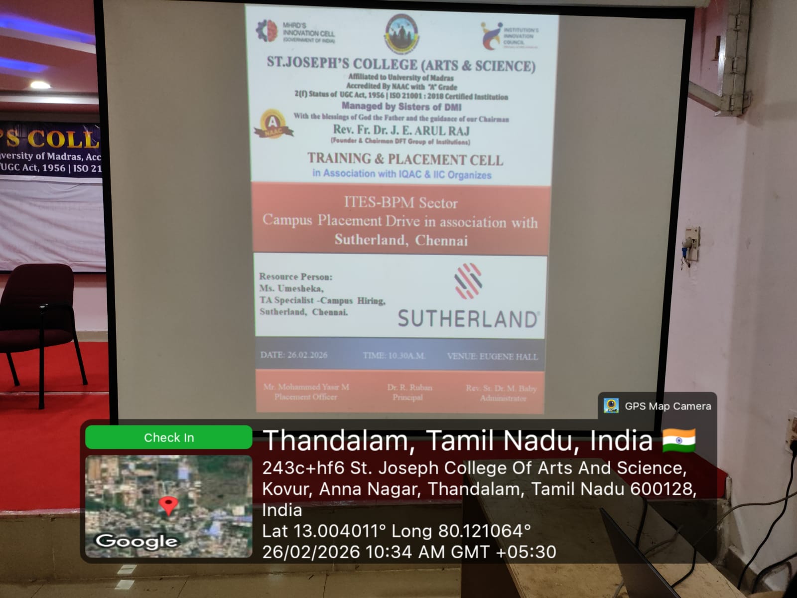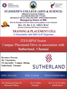 ITES-BPM SECTOR CAMPUS PLACEMENT DRIVE IN ASSOCIATION WITH SUTHERLAND, CHENNAI – TRAINING & PLACEMENT CELL